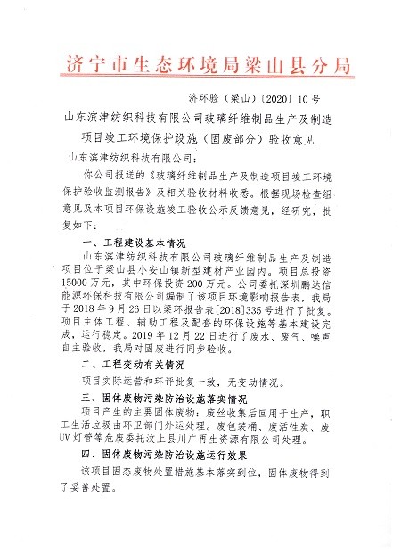 玻璃纤维制品生态及制造项目竣工环境保护验收报告