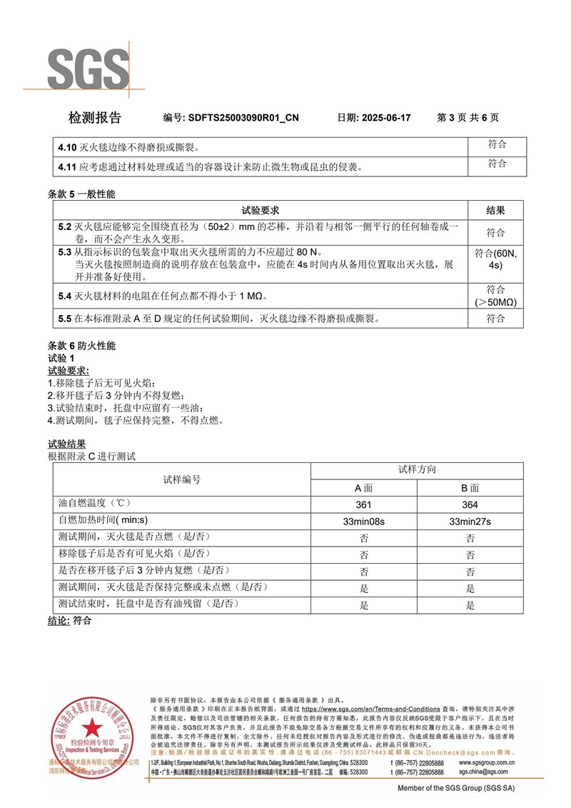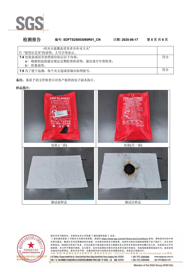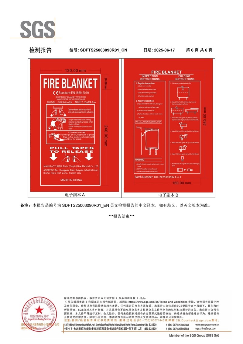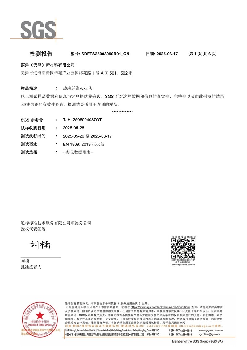 玻璃纤维灭火毯SGS英文检测